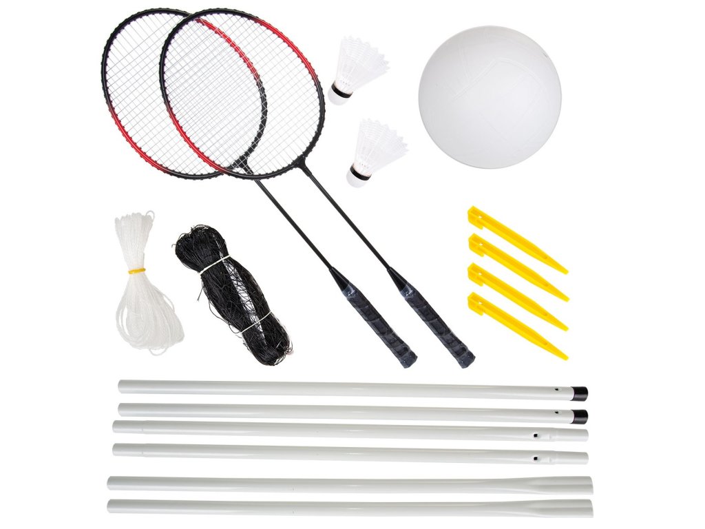 ENERO 6V1 BADMINTONOVÝ A VOLEJBALOVÝ SET ideálny na rekreačnú hru v hale i vonku. Využijete ho s rodinou a priateľmi na záhrade, na pláži aj na športovisku. Pevná sieťovina a pevný oceľový rám odolný voči meniacim sa poveternostným podmienkam umožnia dlhodobé používanie. Vďaka šikovnej taške, v ktorej je súprava zabalená, ju jednoducho zbalíte a môžete vziať so sebou kamkoľvek.