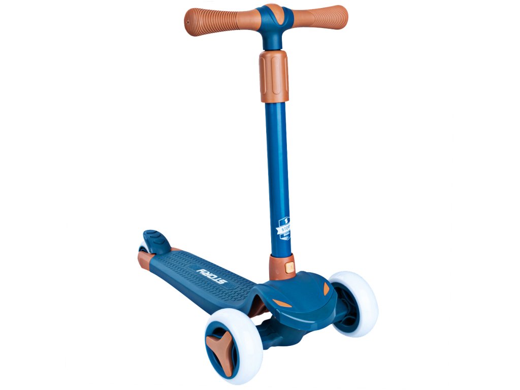 Detská trojkolesová kolobežka Story Mini Friends s LED kolieskami scooter, modrá