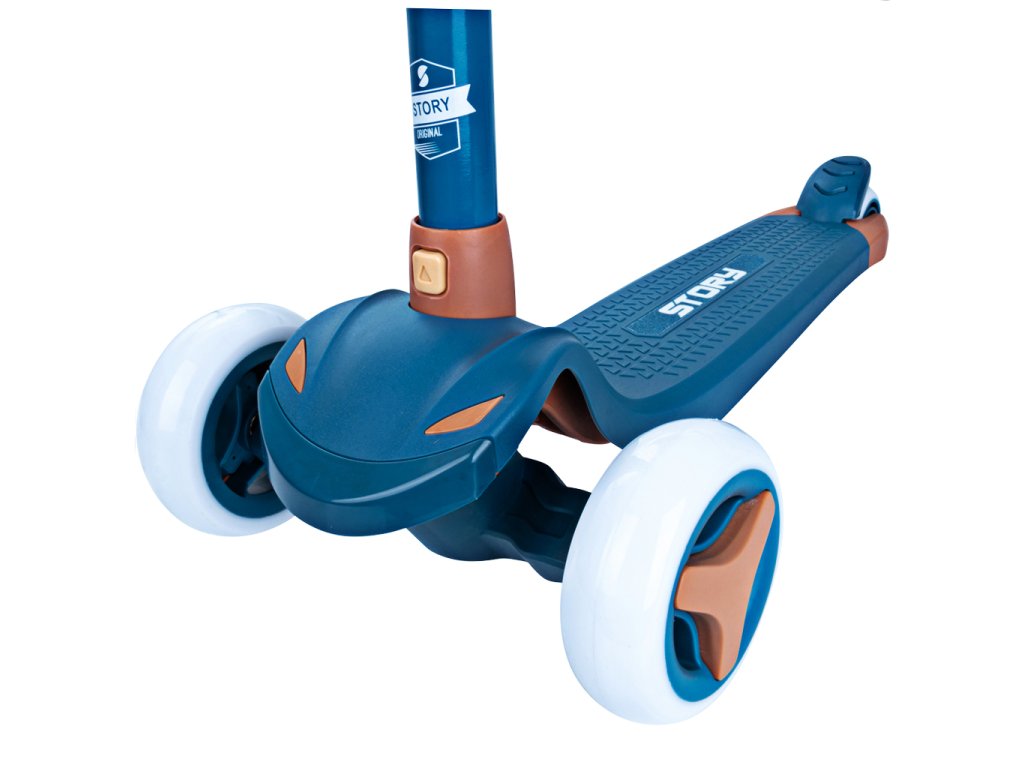 Story Mini Friends LED Deluxe spája naklonenie k riadeniu, neuveriteľne ľahký rám a výškovo nastaviteľné riadidlá. Story Mini Friends LED Deluxe je tiež vybavená samonapájanými LED kolieskami, čo eliminuje potrebu batérií. Tieto dômyselné kolieska sa rozsvecujú prostredníctvom indukčnej energie, využívajúcej pohyb vášho dieťaťa na kolobežke a dodávajúcej kolieskam energiu.