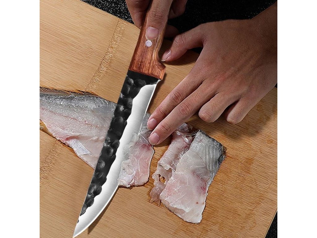 Moderný nôž s dĺžkou 26 cm, vyznačujúci sa vysokou kvalitou spracovania a inovatívnym dizajnom. Dokonalá kombinácia odolnej čepele z nerezovej ocele, ergonomickej rukoväte s drevenými výstelkami a praktického krytu z neho robí nevyhnutný nástroj každého kuchára. iba osobám starším ako 18 rokov!