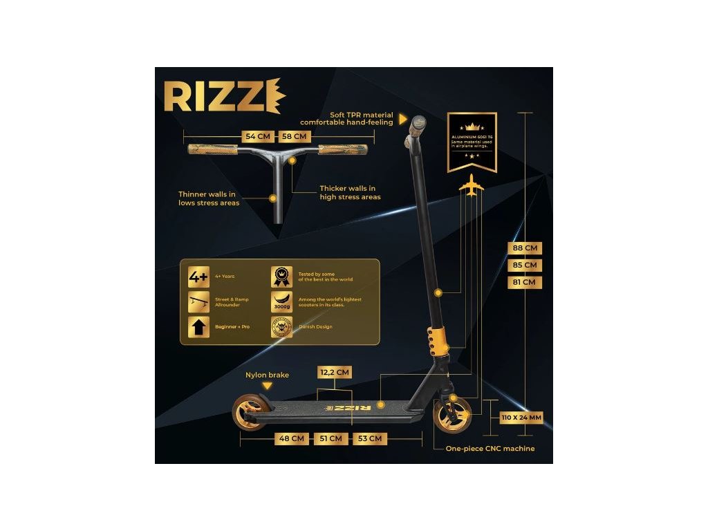 Freestyle kolobežka NKD Rizz Stunt, Čierno-zlatá