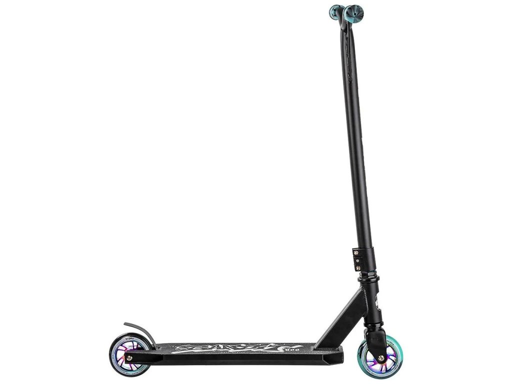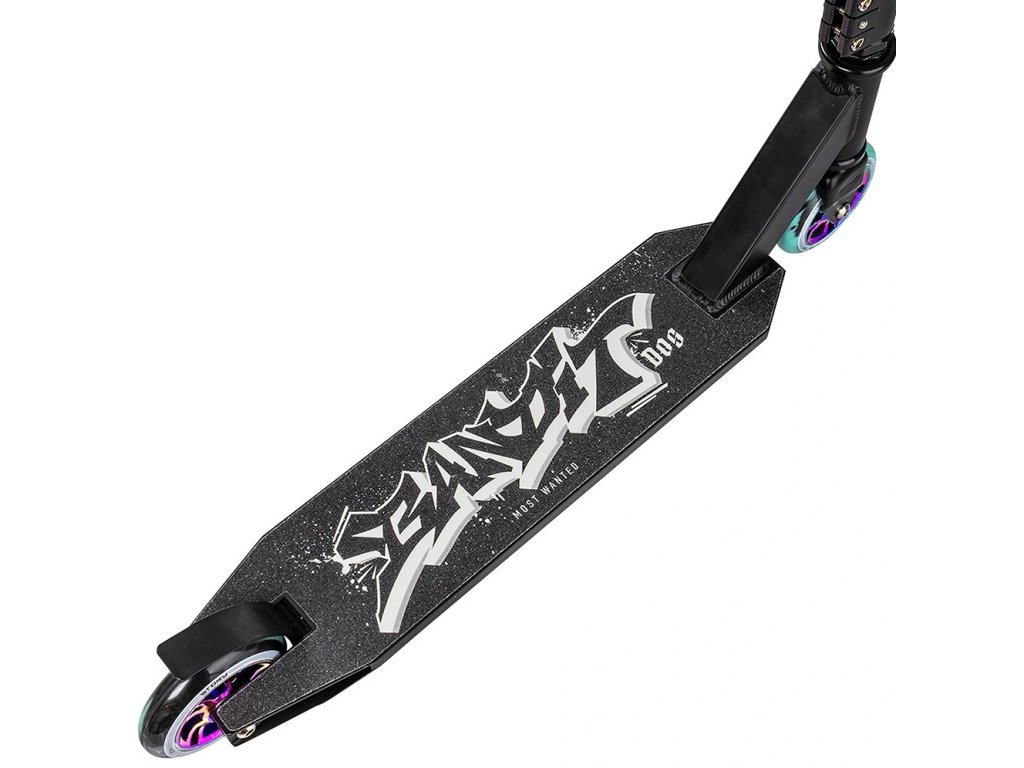 Táto freestyle kolobežka je vybavená "Rogue of the deck" = doska je vyrobená zo silného hliníka a ponúka nielen výrez pre viditeľnosť vidlice skrz hlavovú tyč, ale taktiež dve klzné lišty na spodnej strane dosky.