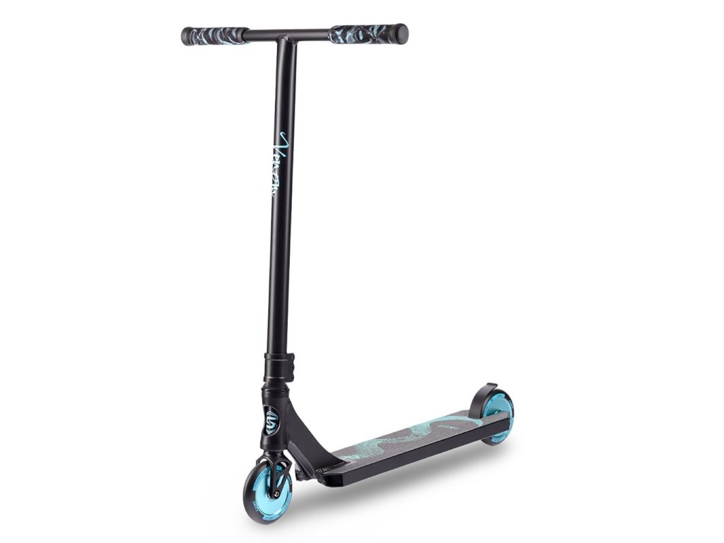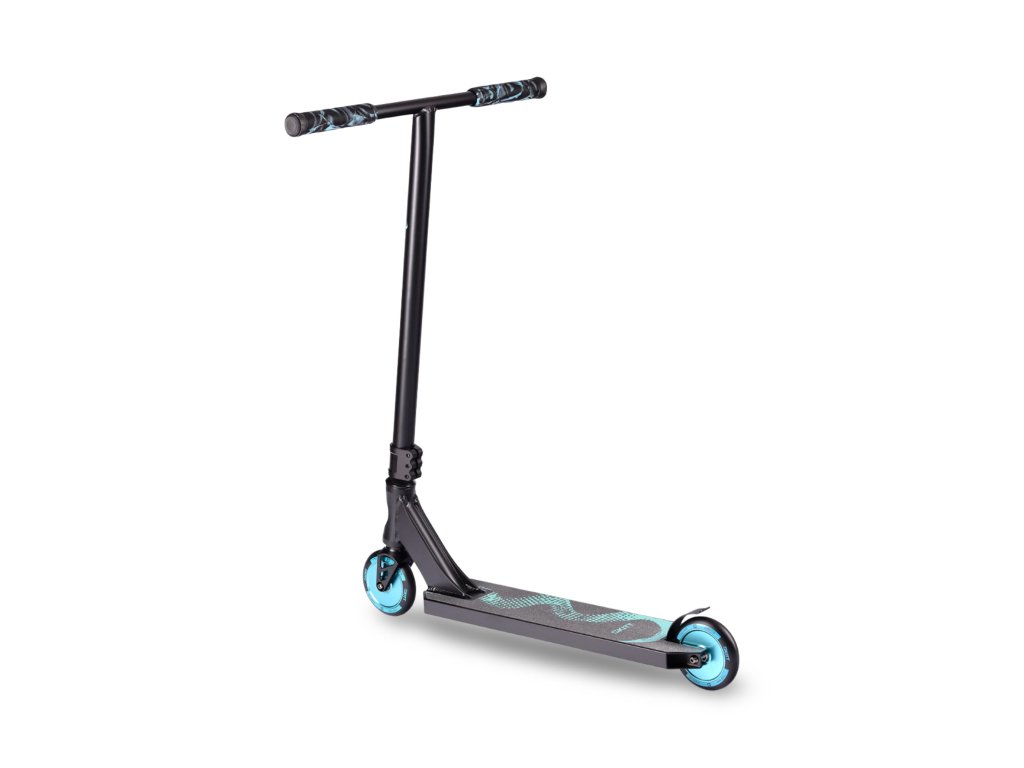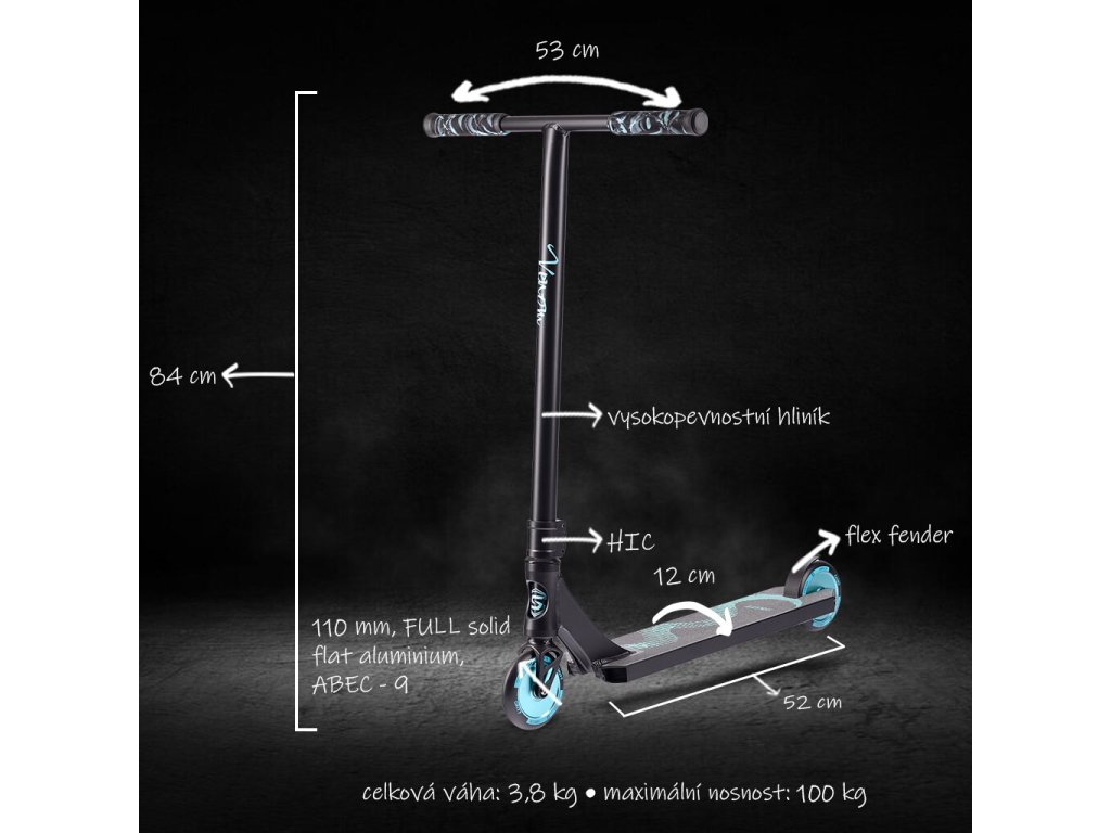 Vieme, čo pokročilý rider potrebuje. Doska musí ponúkať dostatok priestoru pre istý postoj na zábradlí a kolesá musia prežiť brutálne nárazy. Preto sme pri modeli VENOM nešetrili na materiáli. Osadili sme ho prémiovými 110mm kolesami, ktoré nemajú klasické lúče, ale plné hliníkové jadro – Full Solid Flat Aluminium. K tomu sme pridali nezničiteľné hliníkové T-bar riadidlá a profi kompresný systém HIC. S váhou 3,8 kg to nie je žiadna trasúca sa hračka, ale precízne vyvážený stroj, ktorý presne vie, čo od neho vo vzduchu chceš.