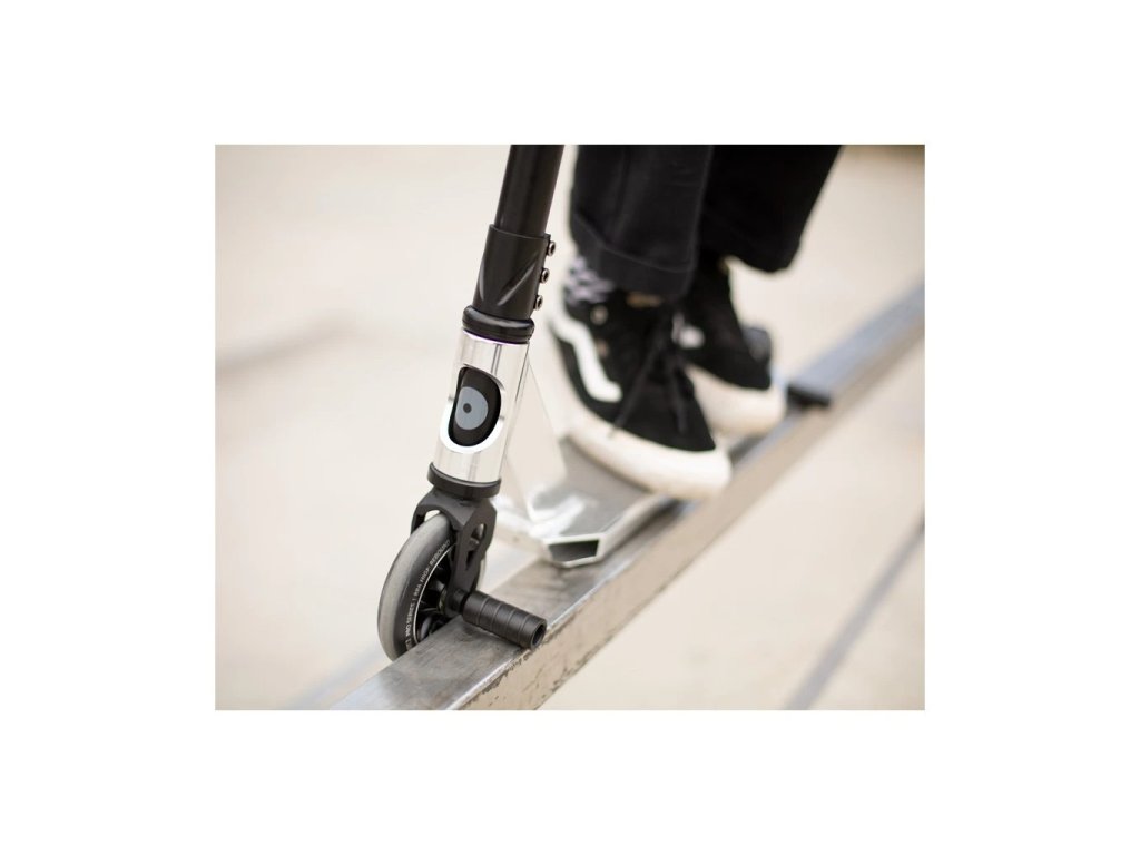 MOVINO Glide je model vyvinutý pre jazdcov, ktorí hľadajú pohodlnú a ľahko ovládateľnú kolobežku na učenie nových trikov. Platforma s rozmermi 48 × 11 cm je vyrobená výhradne z hliníka, čo zaručuje ideálny pomer hmotnosti a pevnosti.
