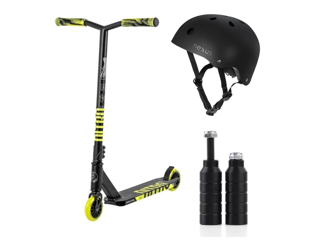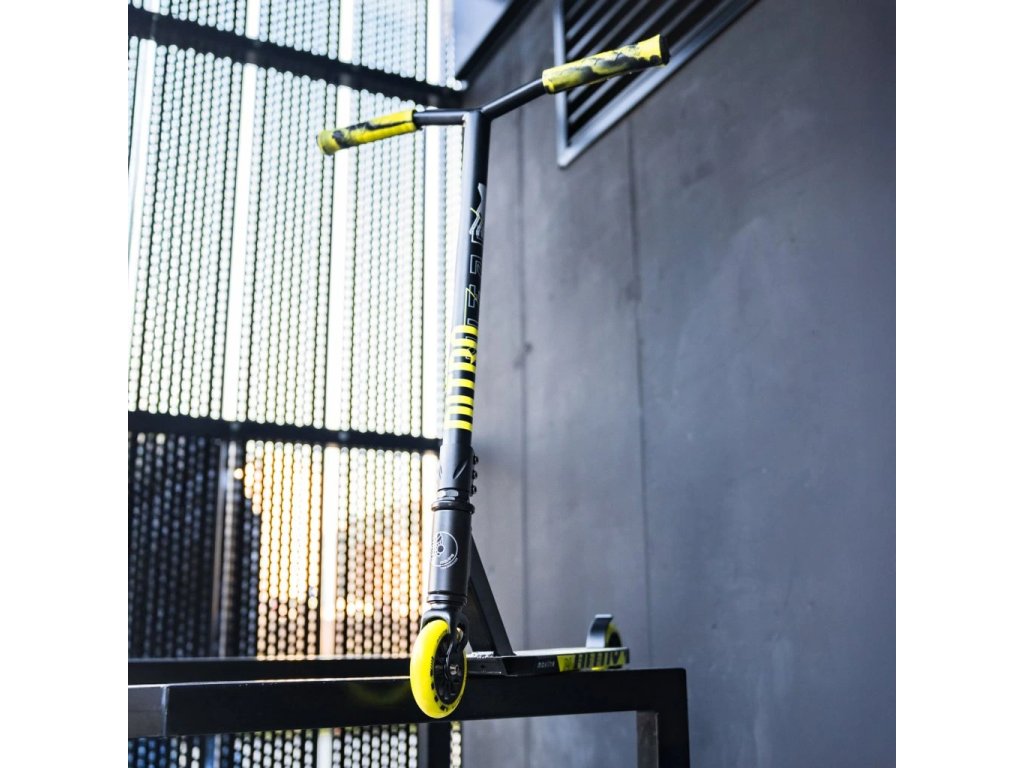 Celok dopĺňajú ložiská ABEC-9 Carbon, brzdový systém FLEX FENDER, riadidlá otočné o 360° a 100 mm kolieska s nylonovým jadrom. Kolobežka má certifikát potvrdzujúci zhodu s požiadavkami európskej normy EN14619:2015 pre športové kolobežky.