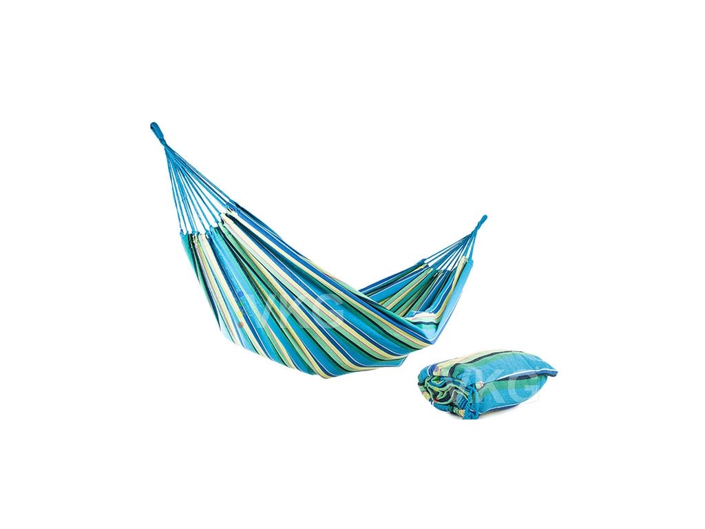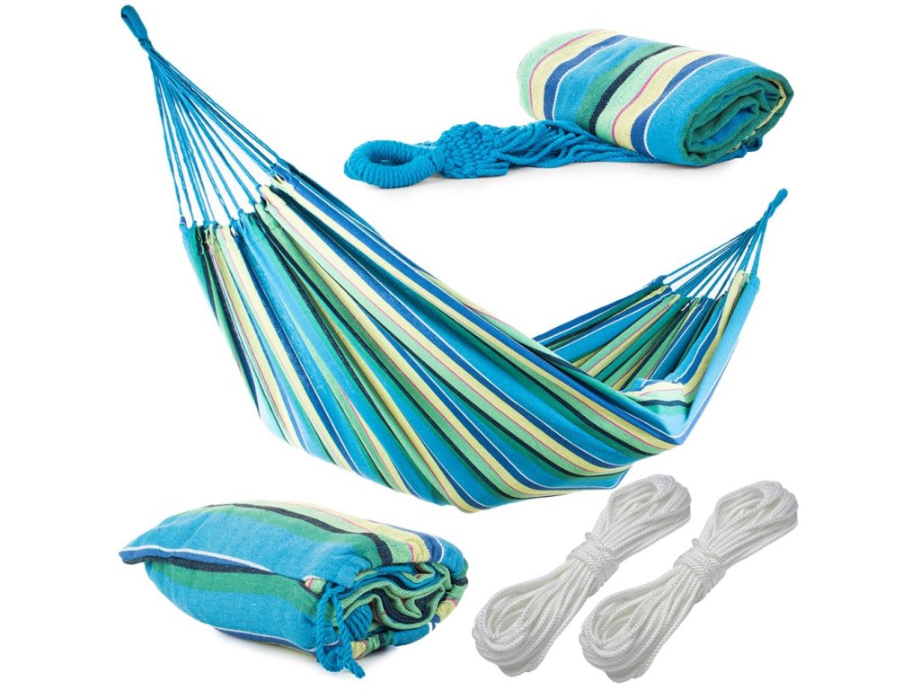 Hojdacia bavlnená sieť, modro-zelená, dvojitá - 270x150 cm