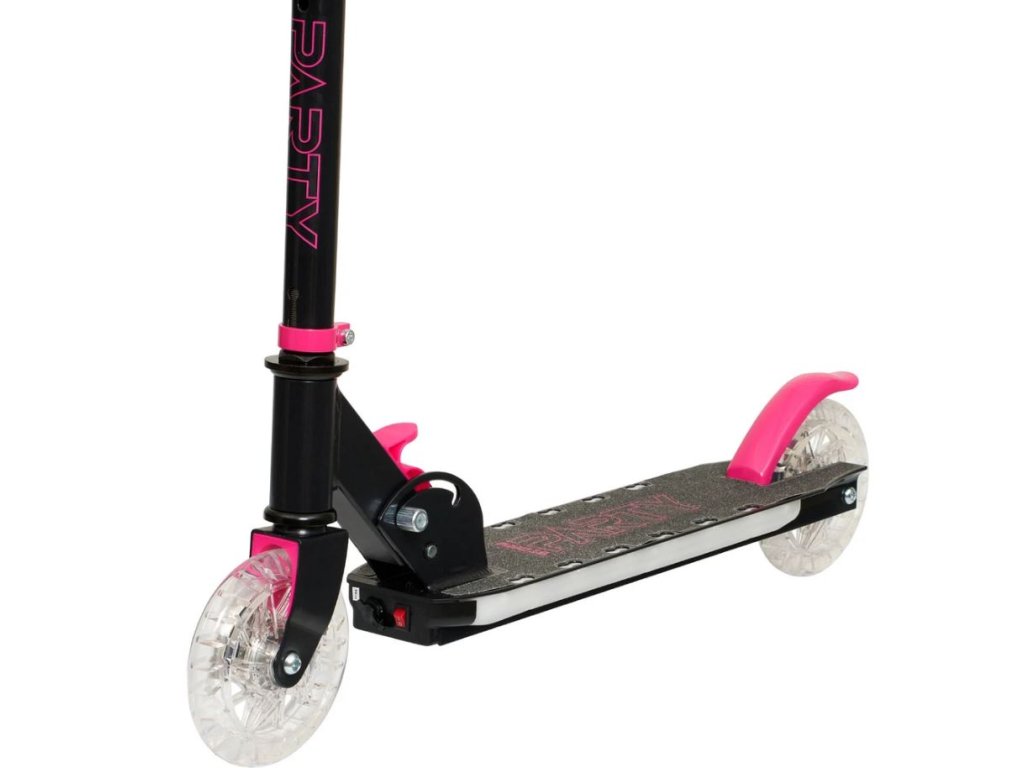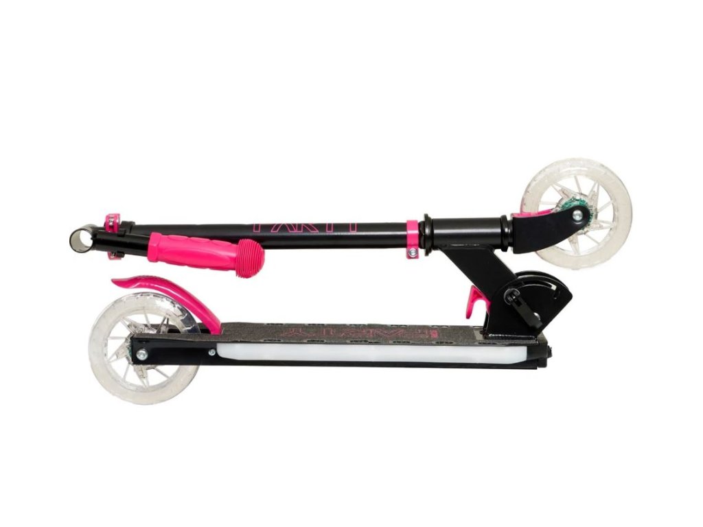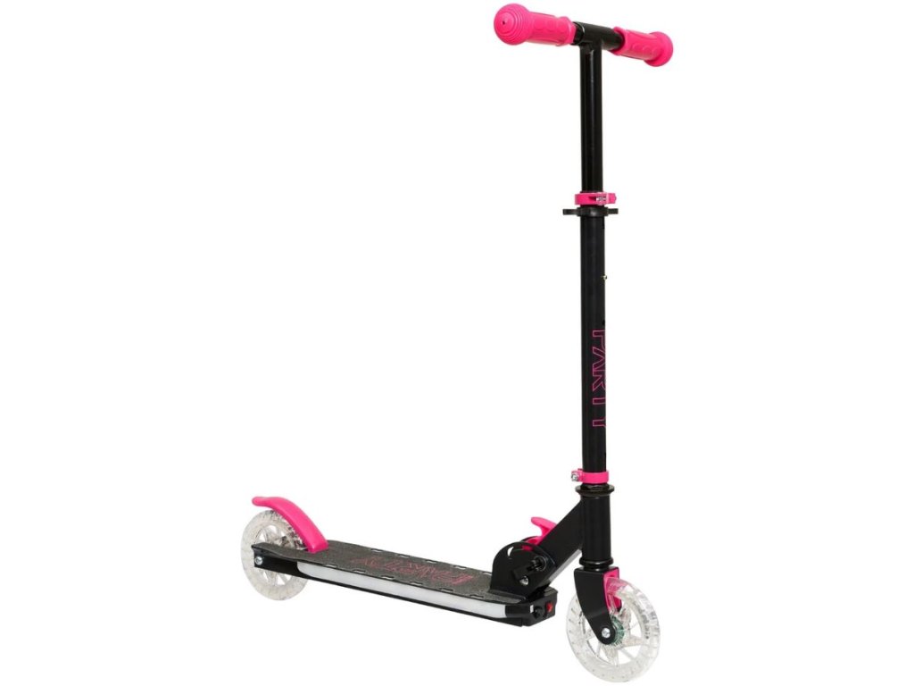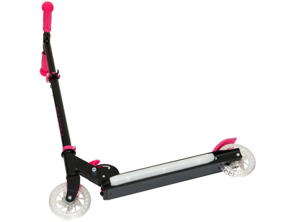 Detská kolobežka Story LED so svietiacimi kolieskami, Čierno-ružová