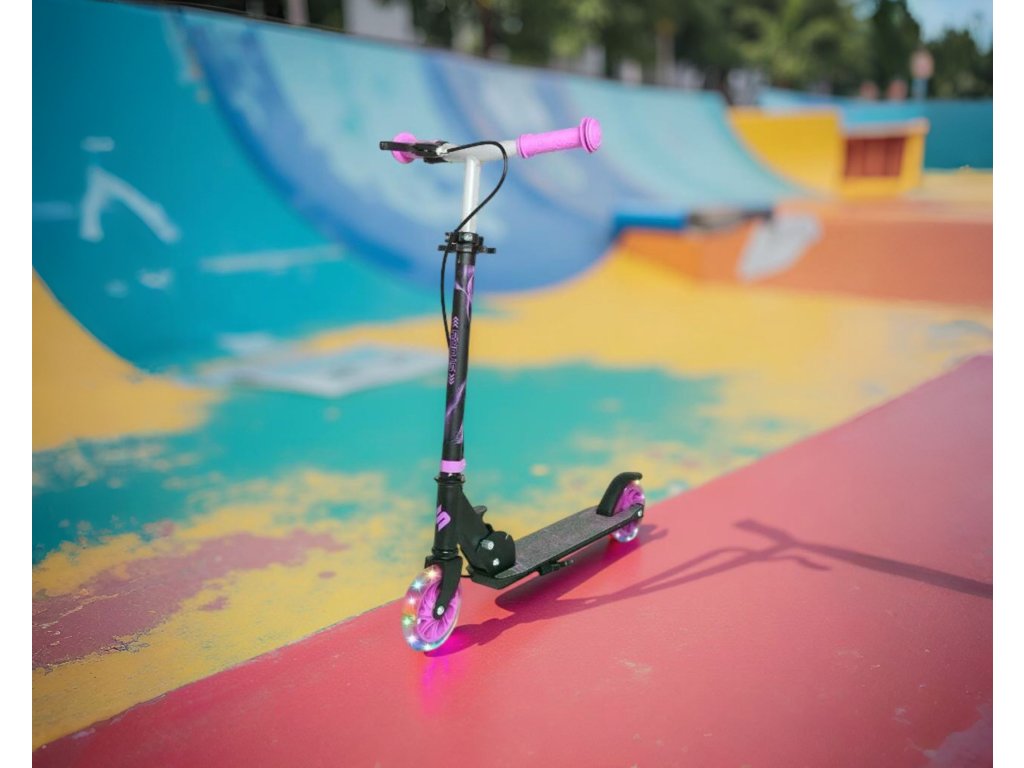 Detská kolobežka Story Play s ručnou brzdou, LED kolieska, fialová