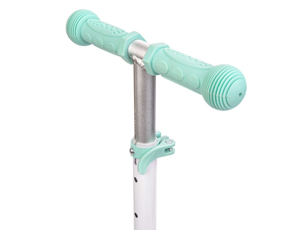Rídidlá typu T-bar s gumovými úchytmi zaisťujú kontrolu nad vozidlom a pohodlný úchop. Mäkký povrch rukovätí chráni pred otlakmi a odreninami na rukách. Riadidlá je možné ľahko demontovať pomocou jediného tlačidla, vďaka čomu je kolobežka kompaktná a ľahko prepraviteľná. Jej výšku je možné nastaviť v 4 polohách v rozmedzí: 60/65/70/75 cm, čo umožňuje jednoduché prispôsobenie kolobežky výške dieťaťa.