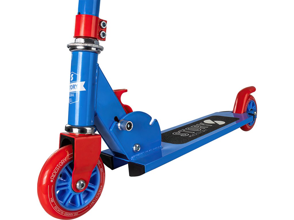 Skladacia kolobežka Story Flow je ideálna kolobežka pre deti vo veku od 3 do 6 rokov. Ak hľadáte perfektnú kolobežku, na ktorej sa vaše dieťa naučí jazdiť, už nemusíte hľadať ďalej. Story Flow bola navrhnutá presne na tento účel. Široké kolieska pomáhajú lepšie udržiavať rovnováhu. Kolobežku možno jednoducho prispôsobiť rôznym výškam detí, pretože výšku tyče možno nastaviť podľa potreby – v rozmedzí od 58 do 77 cm. Zadná časť dosky je vybavená pružinovou brzdou.