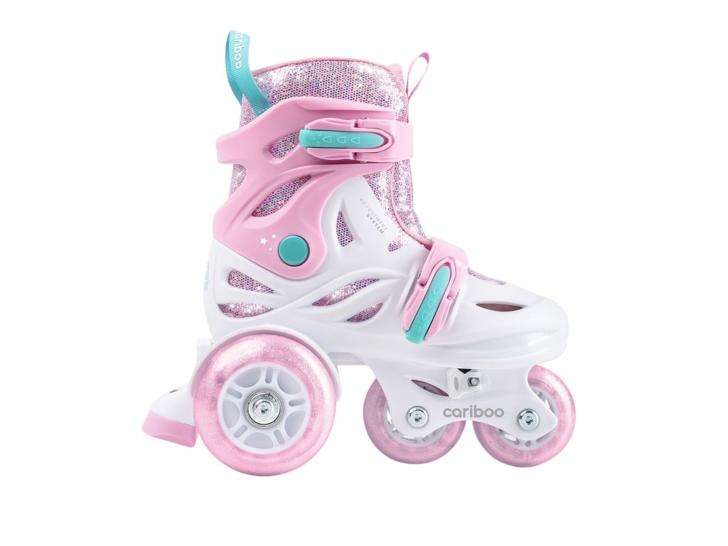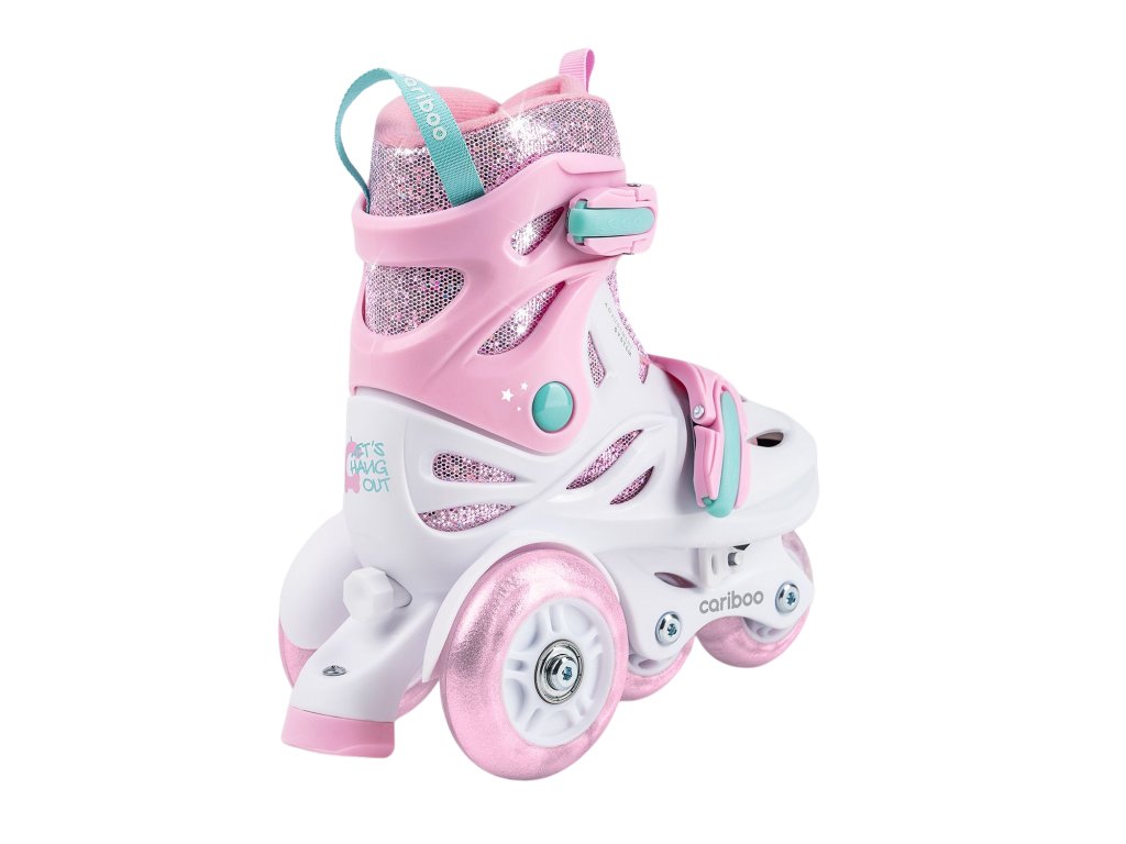 Detské kolieskové korčule Cariboo Ballerina sú perfektným riešením pre najmenších používateľov. Dodatočné bočné kolieska pomáhajú udržiavať rovnováhu a zároveň neprekážajú pri učení jazdy na korčuliach!