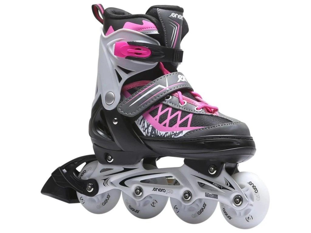 Kolieskové korčule - ľadové korčule 4v1 ENERO PRO LED ponúkajú vynikajúci korčuliarsky výkon. To je dosiahnuté vďaka ľahkým hliníkovým rámom a spoľahlivému systému troch zapínaní, ktorý sa skladá z nastaviteľnej spony Quick Lock, suchého zipsu a šnúrok, ktoré bezpečne držia nohy. Vďaka tomu je tento model vhodný pre všetky podmienky a poskytuje jedinečný zážitok z korčuľovania v ktoromkoľvek zo štyroch režimov. Ich vysoká kvalita zaručuje trvanlivosť a odolnosť proti mechanickému poškodeniu. Vyznačujú sa ľahkým a pevným hliníkovým rámom, brzdou, matnými kolesami s priemerom 64 mm s bielymi LED svetlami, tromi nastaviteľnými úchytmi a možnosťou nastavenia veľkosti. Kolieska a ložiská ABEC7 znižujú valivý odpor a sú vhodné pre dlhé vzdialenosti a rekreačné korčuľovanie. Zosílený zvršok, chránený nepremokavou vrstvou, široký a pohodlný strih a mäkké polstrovanie okolo členku výrazne zvyšujú pohodlie pri korčuľovaní. Rámy korčúľ sú vyrobené z odolného kovu odolného proti poškodeniu a korózii.