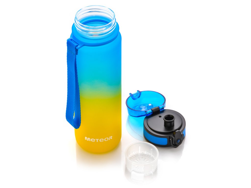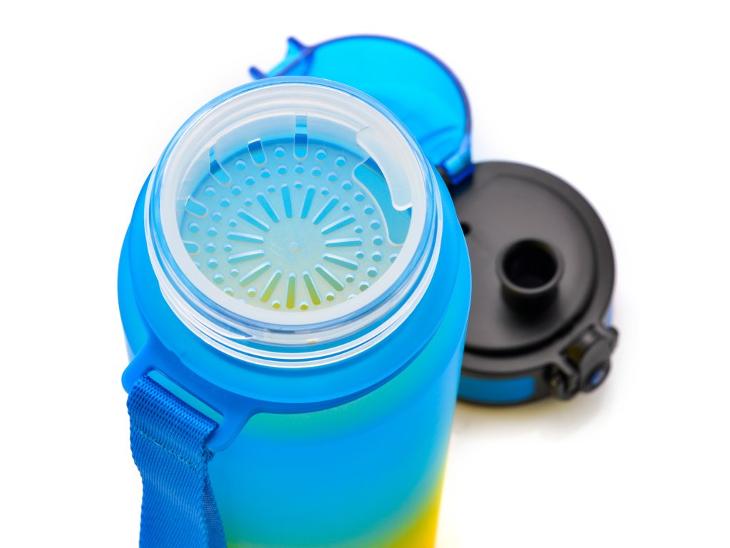 Praktickú športovú fľašu si môžete vziať so sebou prakticky kamkoľvek. Fľaša je priehľadná, má matný vzhľad a protišmykový povrch. Špeciálny filter neobmedzuje prietok nápoja, slúži na pohodlné pitie pri pridaní ovocia alebo kociek ľadu. Má správnu veľkosť pre väčšinu bicyklov, kolobežiek a elektrokolobežiek.