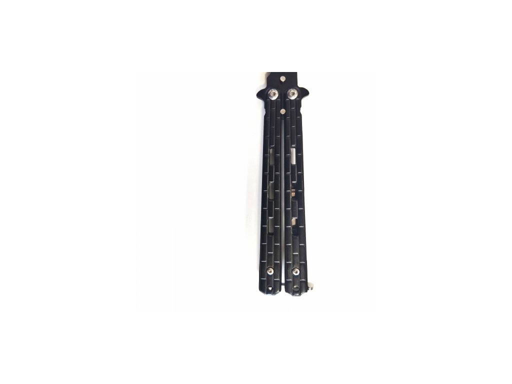 Klasický skladací nôž-motýlik, v čiernej farbe, celková veľkosť noža 22cm.