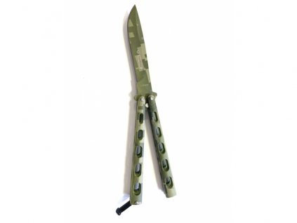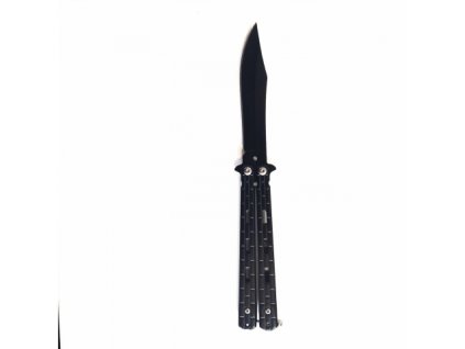 Zatvárací nôž motýlik. Nôž s dĺžkou 22,5 cm. Možno pohodlne rozložiť jednou rukou. Nôž je vybavený zámkom otvárania