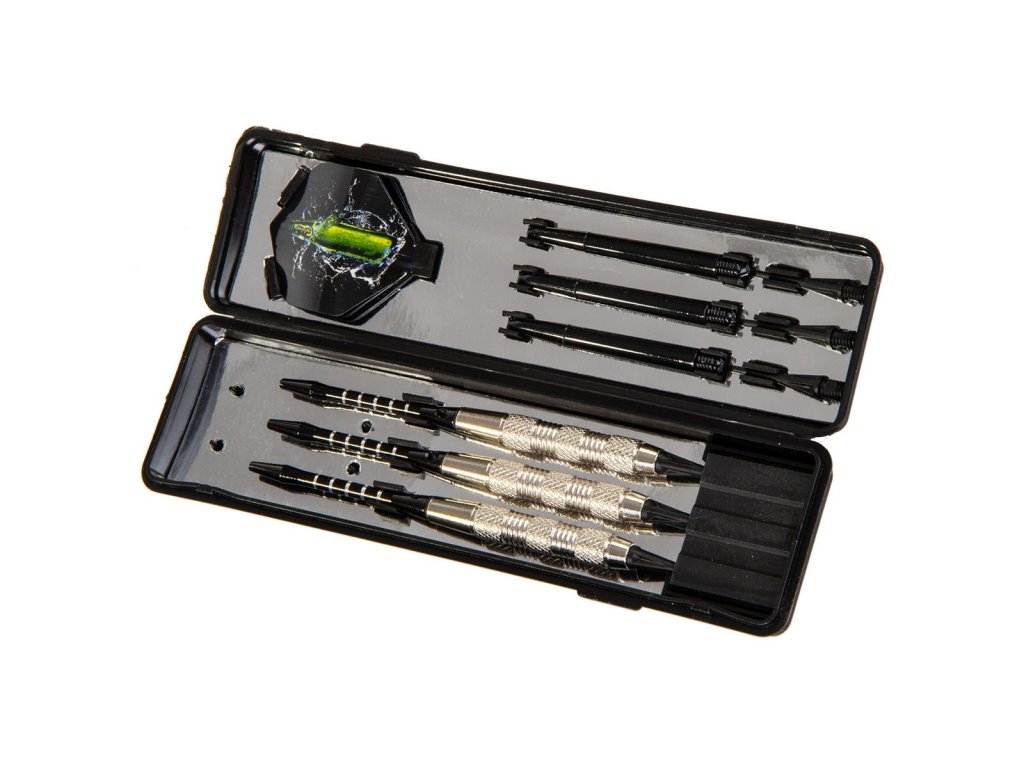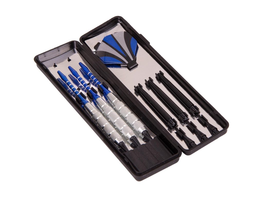 Súprava plastových šípok ENERO plus doplnková výbava zabalená v plastovom kufríku zaisťuje pohodlnú prepravu a skladovanie. Sú ideálne na hranie na elektronický terč.