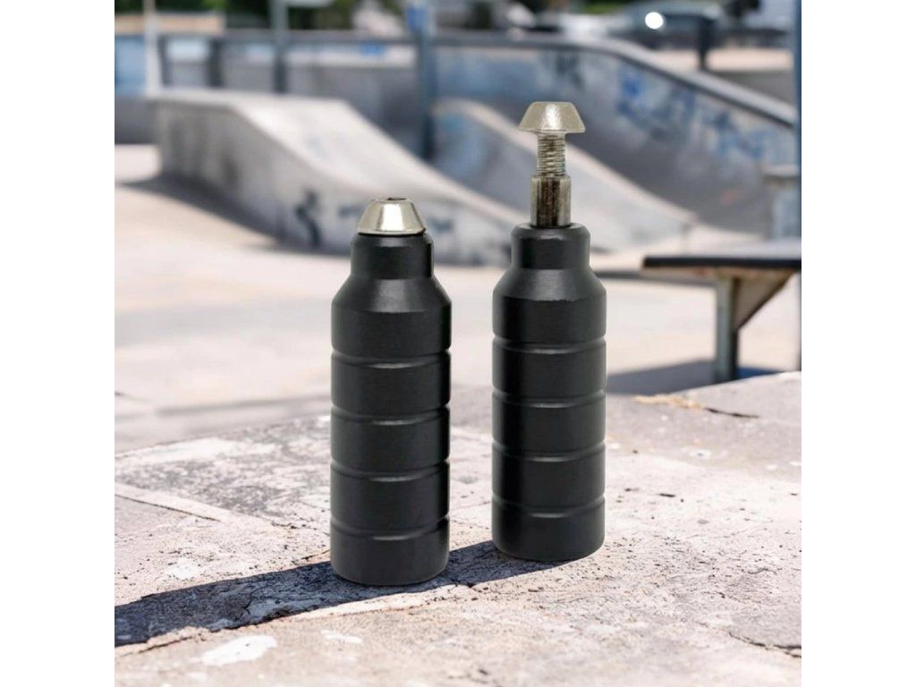 Pegy jazdcom otvárajú nový svet trikov. Grindovanie zábradlí alebo hrán je súčasť každej streetovej session a jazda tak získava nový rozmer. Pegy sú určené na montáž na predné aj zadné koleso. Kratší peg na predné koleso (dĺžka skrutky 4,5 cm) je možné namontovať na akúkoľvek vidlicu bežne dostupných kolobežiek. Dlhší zadný peg (dĺžka skrutky 6,5 cm) je vhodný iba pre freestyle kolobežky so zúženou doskou v zadnej časti. Pegy sú vyrobené zo spevneného hliníka, ktorý zvládne tvrdé dopady aj opakované grindy, zatiaľ čo oceľové skrutky zabezpečia pevné uchytenie.