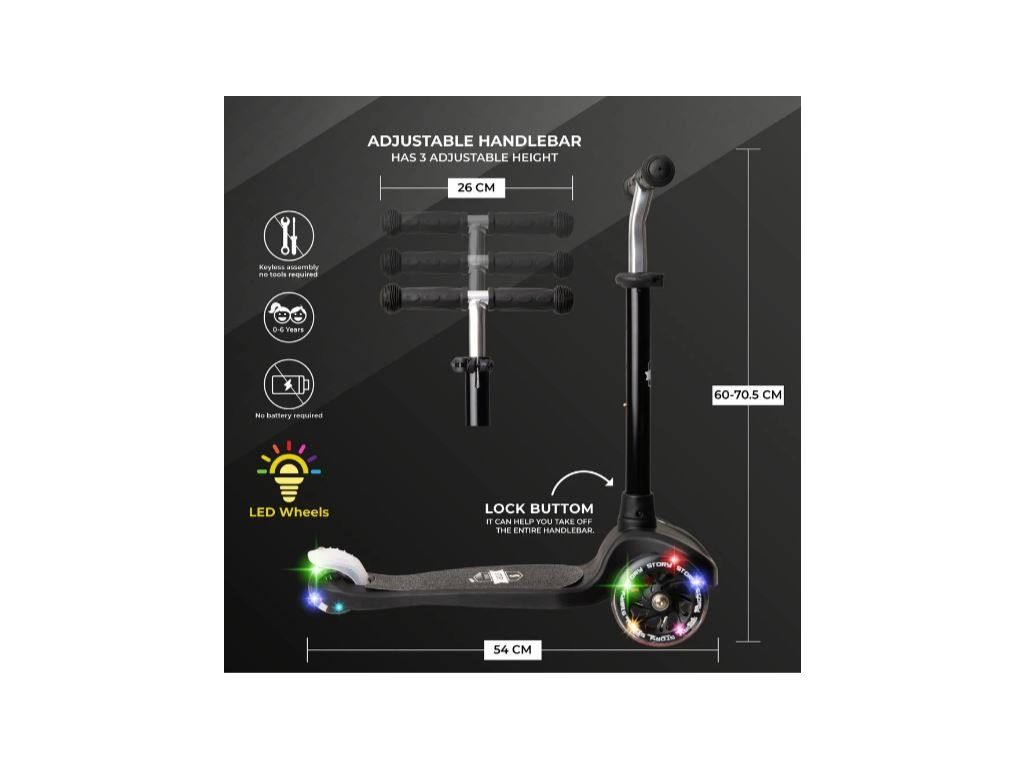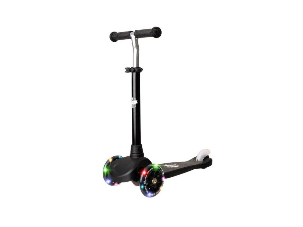 Detská trojkolesová kolobežka Story Mini so svietiacimi LED kolesami, Čierna