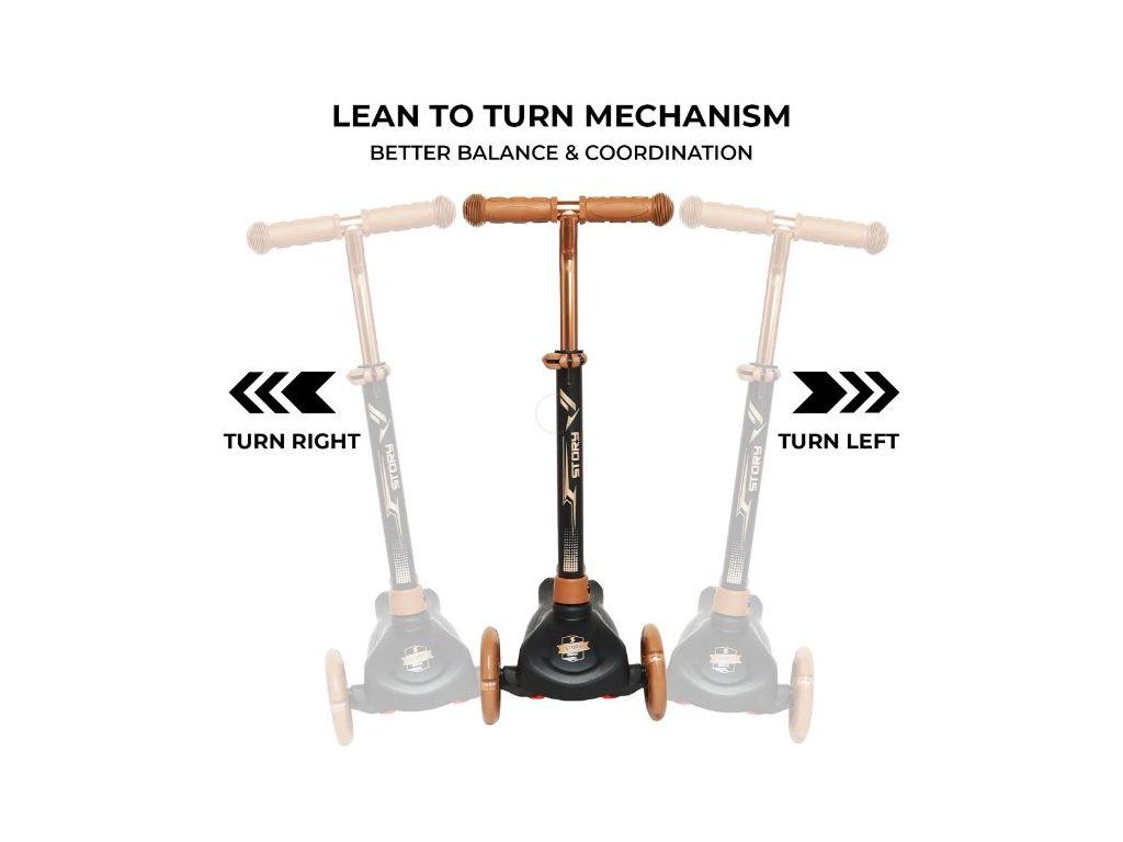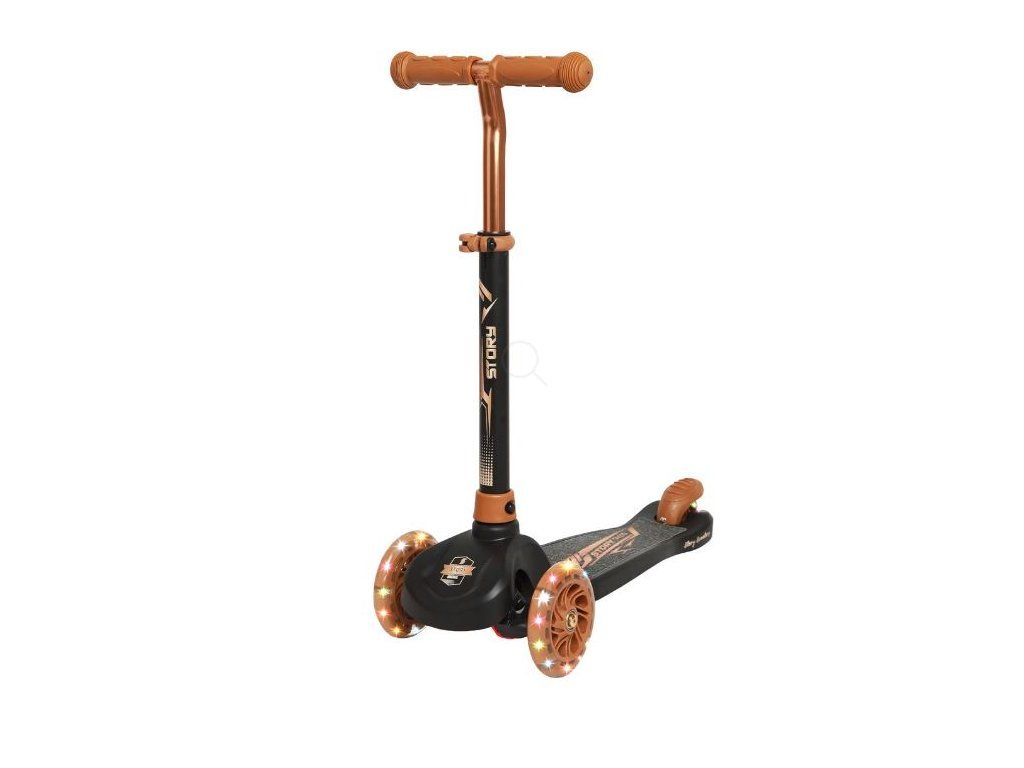 Detská trojkolesová kolobežka Story Mini so svietiacimi LED kolesami, Čierno-zlatá