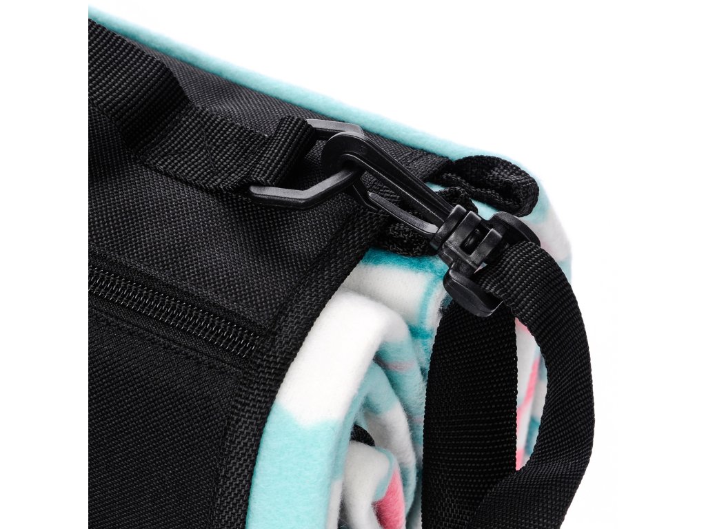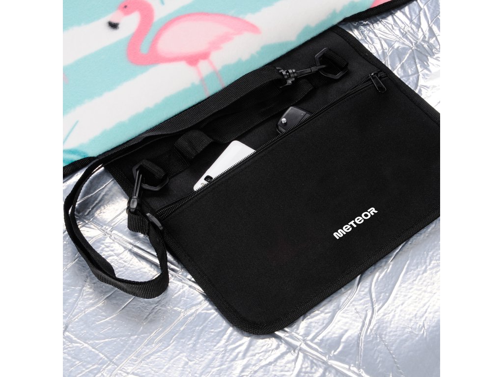 Piknikovú deku využijete nielen počas rodinného obeda v parku, ale aj pri vode, alebo napríklad ako podlahu v stane. Materiál vrchnej strany je na dotyk príjemný fleece. Spodná vrstva je vyrobená z hliníkovej fólie opatrenej vodoodolnou úpravou, ktorá tak chráni pred vlhkom a chladom napríklad od mokrej trávy. Na jednoduché prenášanie možno deku zložiť do malej „tašky“ vybavenej uchom a popruhom cez rameno. V chlopni sa nachádza vrecko na zips, do ktorého sa zmestia napríklad kľúče, telefón alebo peňaženka.