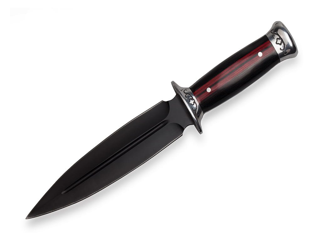 Elegantná, štýlová a tmavá dýka v krásnych čiernych odtieňoch. Vy skvele padne do ruky a je vytvorená podľa tradičných rituálnych dýk. profilom dýky má obojstranne hladkú čepeľ style="font-family: var(--template-font),sans-serif;">z najkvalitnejšej nerezovej ocele 440