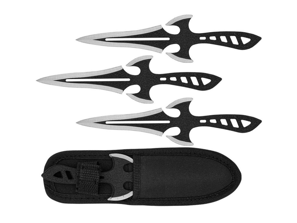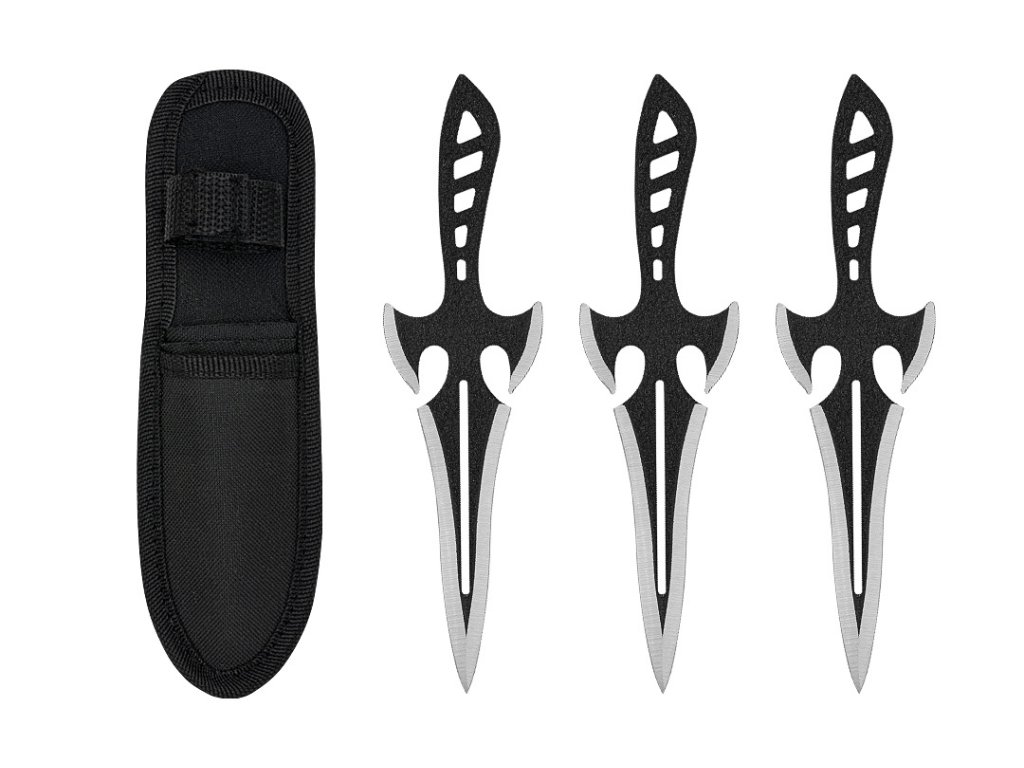 Sada tří pevných vrhacích nožů, ideální pro rozvíjení dovedností a zdokonalování přesnosti hodu.