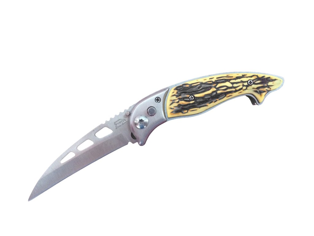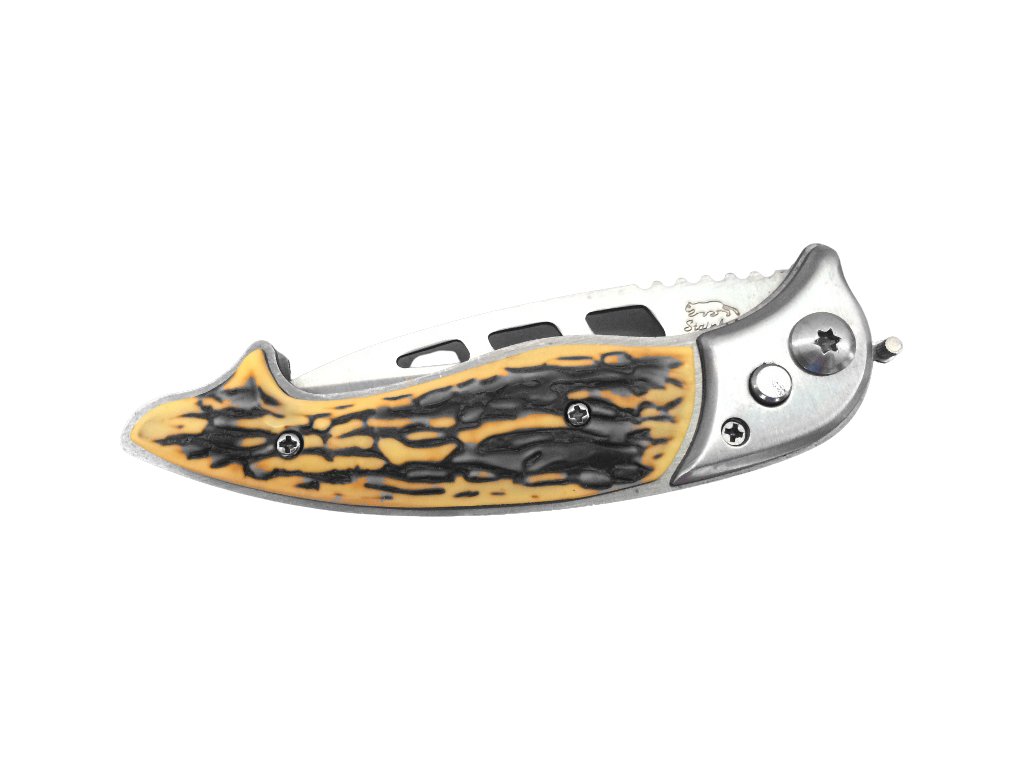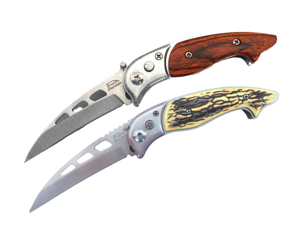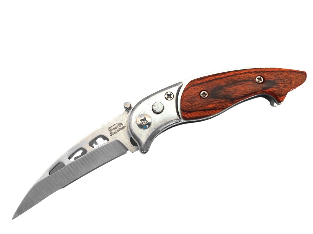 Vreckový malý vystreľovací nožík, vhodný predovšetkým do prírody, kemping či rybárčenie alebo aj pre všetkých hubárov. Môžete vyberať v 2 prevedeniach – drevo alebo biele drevo. Poistka proti vystreleniu sa nachádza na hornej strane noža, stačí len poistku založiť pozdĺžne s nožom a nôž Vám nevystrelí vo vrecku. Veľkosť noža 14,5 cm. Tento tovar je určený iba pre osoby staršie ako 18 rokov!